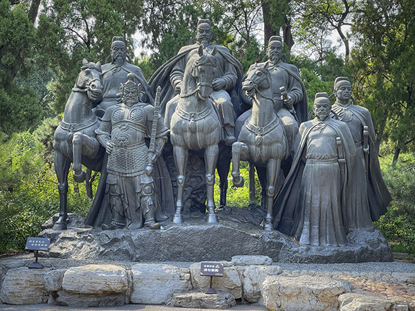 沿“晋祠”中轴线前行,到达“金人台”。金人台共有四尊铁人,因铁为五金之属,人称之为“金人台”。绕过“金人台”来到“对越坊”。对越坊在晋祠景区中轴线上的金人台西,造型优美,结构壮丽。