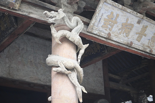最后到达晋祠景区中轴线的末端,晋祠最重要的建筑 “圣母殿”。“圣母殿”匾额上书写着“显灵昭济圣母” 六个大字。晋祠三绝之一是圣母殿内的彩塑侍女像。殿堂宽大疏朗,存有宋代精美彩塑侍女像41尊、明代补塑2尊。塑像形象逼真,造型生动,情态各异。“圣母殿”前的八根立柱上,木雕着盘龙。除了它的建筑结构和殿内大大小小的牌匾外,最引人瞩目的莫过于立柱上的木雕盘龙,活灵活现,生动有趣,这是我国现存最早的盘龙雕柱。