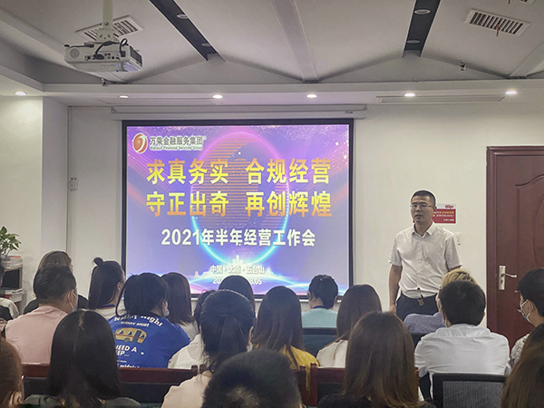 “补短板、压亏损、降投诉、提产能,均衡发展;躬身入局,抓细抓实企业管理;解放思想,守正出奇,继续保持进攻态势;扎紧合规篱笆”---这是集团CEO/总裁韩晓先生为集团下半年工作定出的总基调。白总准确地向全体中层管理人员传达并剖析了韩总裁在半年经营工作会议上的讲话内容,带领大家认真地学习了本次半年会议的主旨精神。