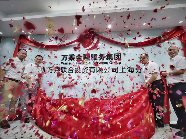 上午11时18分,在飘舞的礼花和热烈的掌声中,万乘金融服务集团创始人/CEO/总裁韩晓先生与万乘集团副总裁周卫平、江苏万乘总经理杨仁森、上海万乘总经理郭宝万一起揭下覆盖在形象墙上的红绸布,象征着上海万乘进入了一个新的发展阶段。