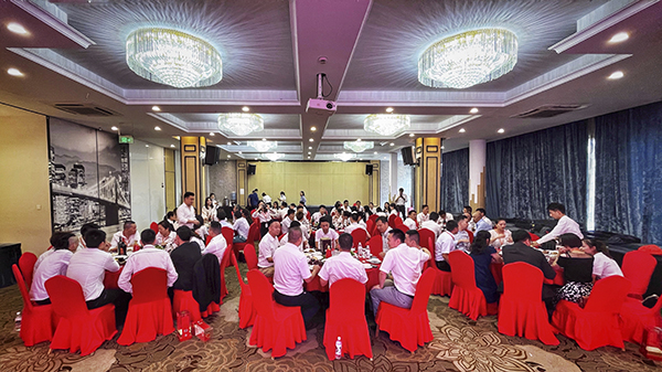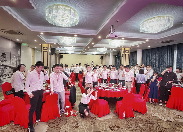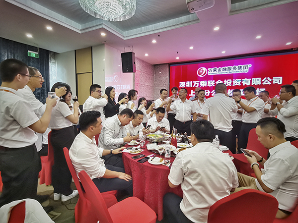 揭牌结束后,韩总裁在上海皇冠晶品大酒店筵开8席,庆祝松江职场正式启动。宾主共同举杯,祝松江职场开业大吉,财源广进,业绩长虹。