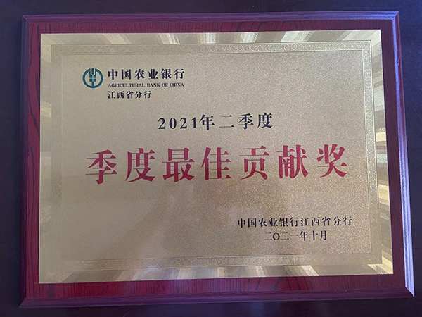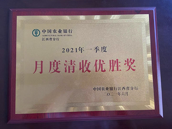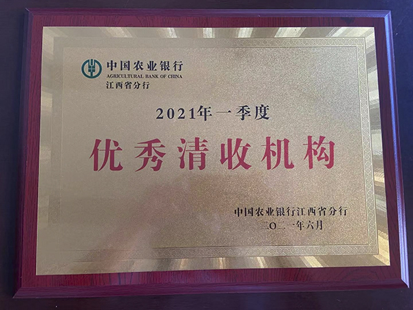 2021年10月14日,中国农业银行江西省分行召开2021年第四季度清收管理会。会议中,对在2021年第一季度和第二季度取得优异成绩的委外机构进行表彰,并颁发奖牌。江西万乘凭借努力,荣获省农行颁发的“2021年一季度优秀清收机构”、“2021年一季度月度清收优胜奖”和“2021年二季度季度最佳贡献奖”等三个奖项。