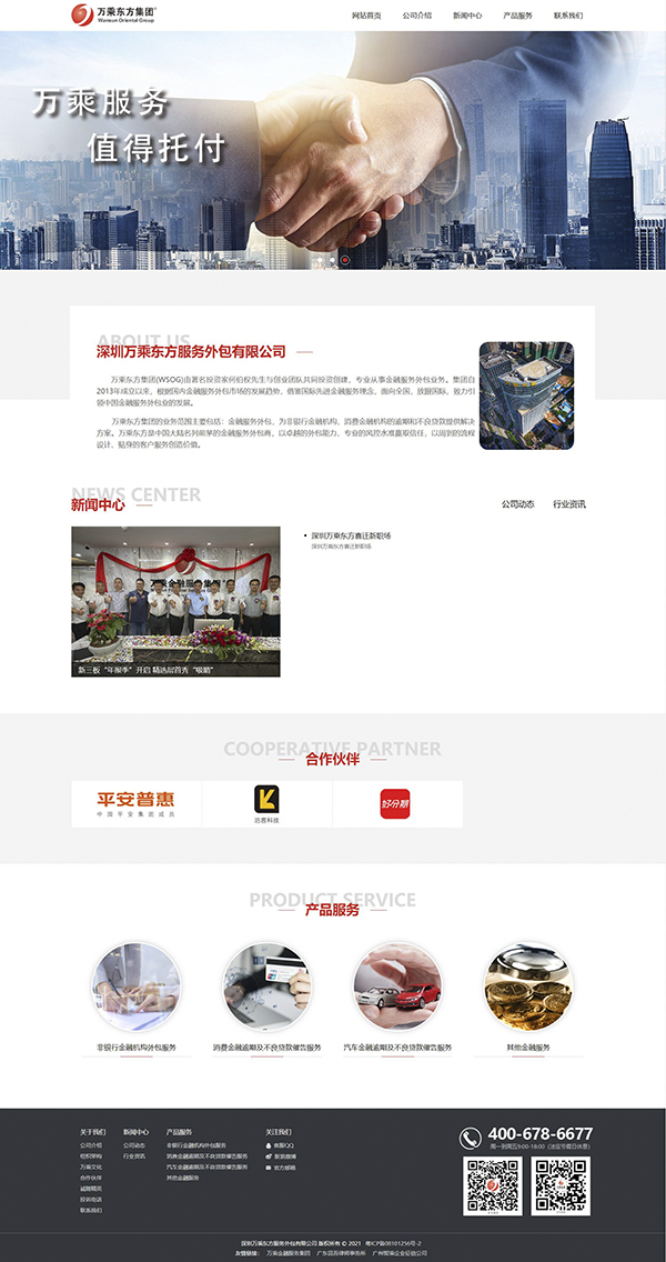 万乘东方集团官网全面呈现了公司介绍、万乘文化、合作伙伴、新闻动态、产品服务等信息,系统展示了万乘东方集团专业的金融服务外包业务和行业解决方案。了解更多关于“万乘东方集团”,请点击万乘东方官网地址https://www.wansuncn.com访问。