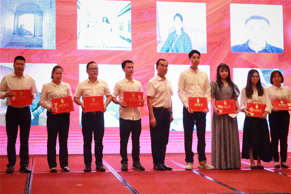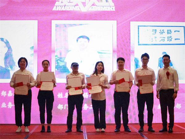 韩晓总裁向获得“最佳业绩奖”的3名员工以及获得“5年长期服务忠诚奖”的8名员工颁发荣誉证书和奖金。