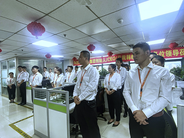 到达厦门公司职场,总裁受到了全体员工的热烈欢迎。首先映入眼帘的是厦门公司的万乘之星,韩总亲切的与几名万乘之星员工握手打招呼,参观了厦门万乘的办公职场,询问业务开展情况,向厦门全体员工传达了集团的慰问与期望、向全体员工介绍了集团今年的发展势头和全国网点布局的最新动态,同时,也对厦门公司提出了殷切的期望,稳固厦门公司脚步的同时,跟上集团的发展脚步,提升和发展厦门业务和团队建设。点评了厦门公司今年的业绩和市场状态,寄望厦门公司在总裁室的支持和总经理室的领导下,早日达成既定的佣金目标,并承诺达成后将再次来到厦门为全体员工举办万乘最高荣誉的总裁荣誉宴。