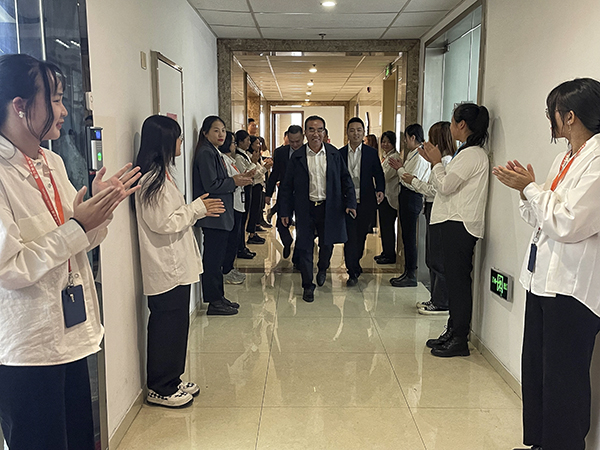 2021年11月9日下午,专程赶赴宁波的万乘金融服务集团创始人/CEO/总裁韩晓先生来到宁波市鄞州区金盛中心16层,亲切看望和慰问战斗在第一线的150多名宁波万乘的小伙伴,并与大家交流互动。