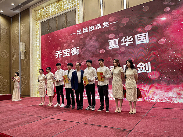 韩晓总裁为获得“出类拔萃奖”的4名员工和获得“独步天下奖”的2名员工颁发奖杯、获奖证书和奖金,并与获奖者合影留念。