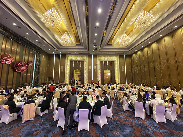 随后,韩总裁、周卫平总经理和邱岩副总经理联袂登台,向全体员工敬三杯酒,以表达对他们的敬意和感谢。