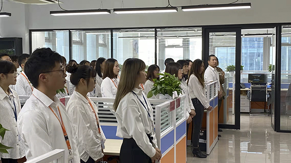 台州万乘副总经理赵清代表60名员工郑重表态:将借本次职场乔迁的东风,向着打造百人团队、实现百万佣金收入的目标全力冲刺,使命必达,决不掉链子。