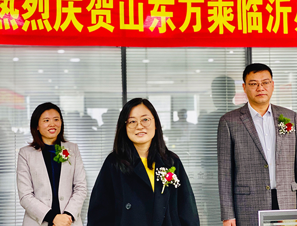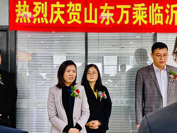 山东万乘总经理周媛发表了讲话,临沂办事处的成立感谢集团总裁室的大力支持,接下来,临沂办事处要充分发挥区位优势,为集团添砖加瓦。