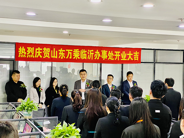 万乘集团副总裁崔明绪先生代表总裁室专程赴临沂为办事处开业揭牌,并发表了热情洋溢的讲话。崔总首先热烈祝贺临沂办事处顺利成立,然后指出,万乘集团在以CEO/总裁韩晓先生为核心的总裁室领导下,合理规划战略布局,积极适应市场变化,近年来发展迅猛,已经成为行业翘楚,总裁室期望山东万乘临沂办事处的全体员工,不忘初心,砥砺前行,做大做强各项业务,为万乘基业长青做出应有的贡献!