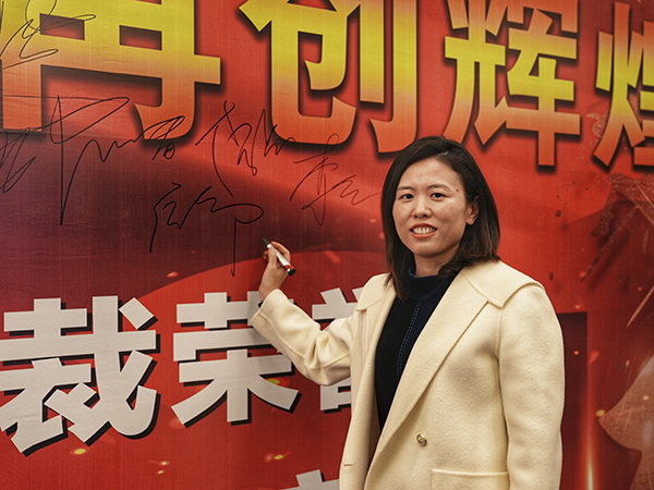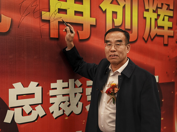 烟台万乘总经理潘治代表全体员工郑重表态:成绩已成为过去,荣誉将化为前进的动力。烟台万乘全体将士必励精图治,奋发有为,向着新目标全力冲刺,用优异的业绩为今年画上一个圆满的句号,向集团总裁室交一份满意的答卷。
