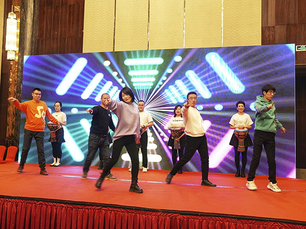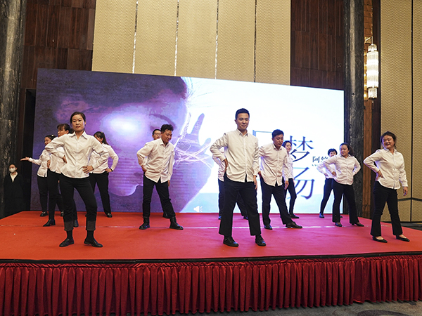 在主持人的引导下,烟台万乘的美女帅哥们表演了歌舞、小品、相声、哑剧等精彩节目,赢得了一阵阵喝彩声和掌声。而穿插其中的抽奖环节和不断抽出的大奖,则不断把晚宴推向高潮。
