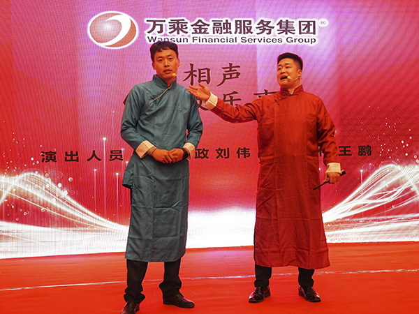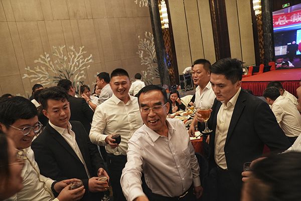 晚上6时许,夕阳西下,华灯初上,五星酒店烟台万达文华大酒店金碧辉煌,流光溢彩,一派祥和。韩晓总裁在酒店大宴会厅筵开10席,为烟台万乘庆功。烟台分公司和威海办事处的万乘小伙伴们喜气洋洋,欢声笑语,荟聚一堂,共享万乘的荣耀时刻。