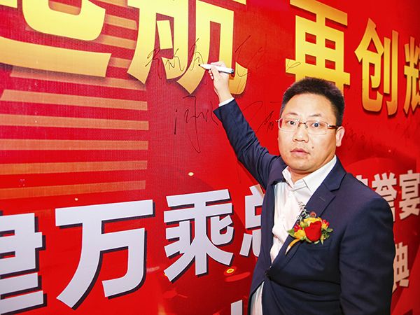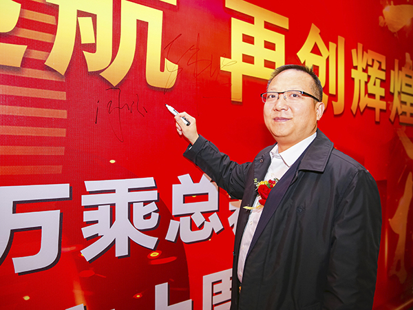 天津万乘总经理李兵代表天津万乘全体员工郑重表态:今天的“总裁荣誉宴”既是无上的荣誉,也是新的起点。从今天开始,全体将士必须瞄准月度佣金收入200万元的新目标,全力以赴,使命必达,尽快实现总裁室下达的新指标,不负韶华,不负万乘。