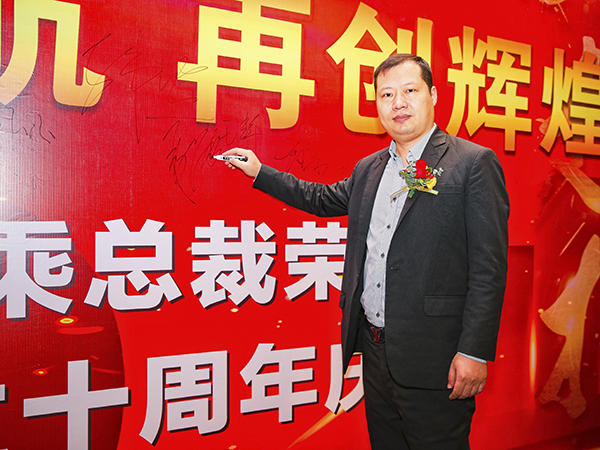 北京万乘总经理董洪青、唐山万乘副总经理何亮、万乘东方集团行政人事部总经理张建功参加了本次“总裁荣誉宴”暨公司成立10周年庆典。