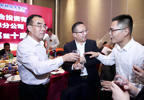 宾主共同举杯,祝天津分公司10岁生日快乐,祝天津分公司业绩长虹,财源滚滚。